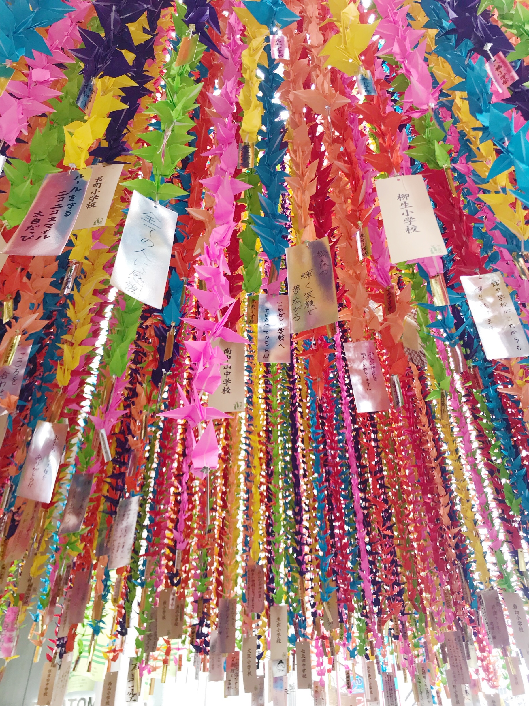仙台の各小学校の生徒が折った折り紙の鶴がとても印象的